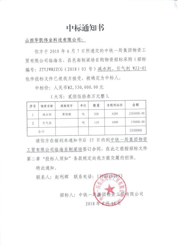 上一篇:恭賀我公司中標中鐵二十四局集團有限公司重慶鐵路樞紐東環(huán)線DHZQ-9標外加劑采購項目